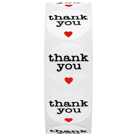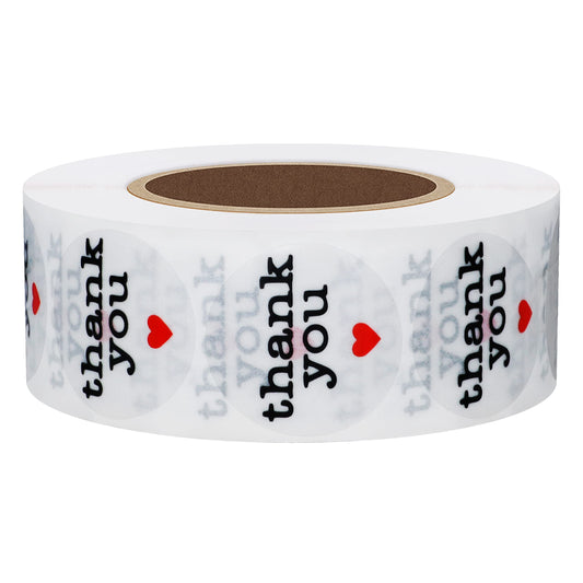 Hybsk Thank You Stickers with Red Heart 1 Inch Round 1,000 Adhesive Labels Per Roll (red Heart)