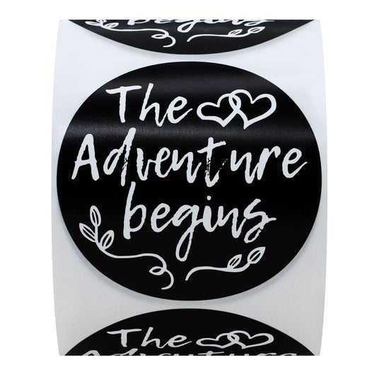 Hybsk The Adventure Begins Stickers -2 inch Round Stickers, for Craft Projects, Weddings and Baby Showers, Wedding Favors - Envelope Tags for Invitations, Gifts & Thank You Notes