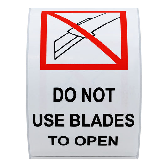 Hybsk 2x4 Inch Red and Black "Do Not Use Blades to Open" Warning Labels Stickers Total 200 Labels Per Roll