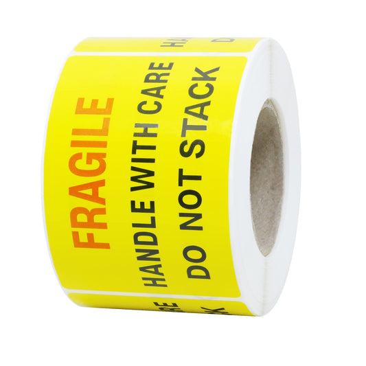 Hybsk 2x3 inch 300pcs Fragile Stickers for Shipping Moving Handle with Care Do Not Stack Yellow Warning Labels