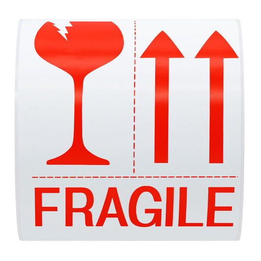 Hybsk 3 x 5 Fragile with Red Arrows Safe Handling Stickers for Shipping and Packing - 100 Adhesive Labels Per Roll