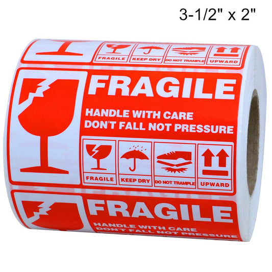 Hybsk 3 x 5 Fragile Handle with Care Pre-Printed Labels/Stickers 100 Labels per Roll