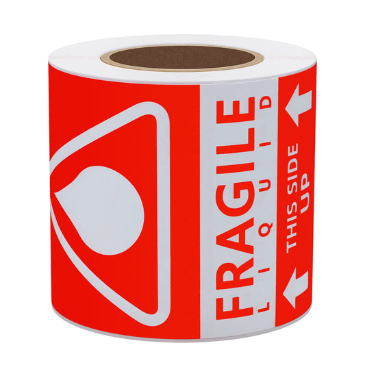 Hybsk 3 x 5 Fragile Liquid in Plastic This End Up Safe Handling Stickers for Shipping and Packing - 100 Adhesive Labels Per Roll